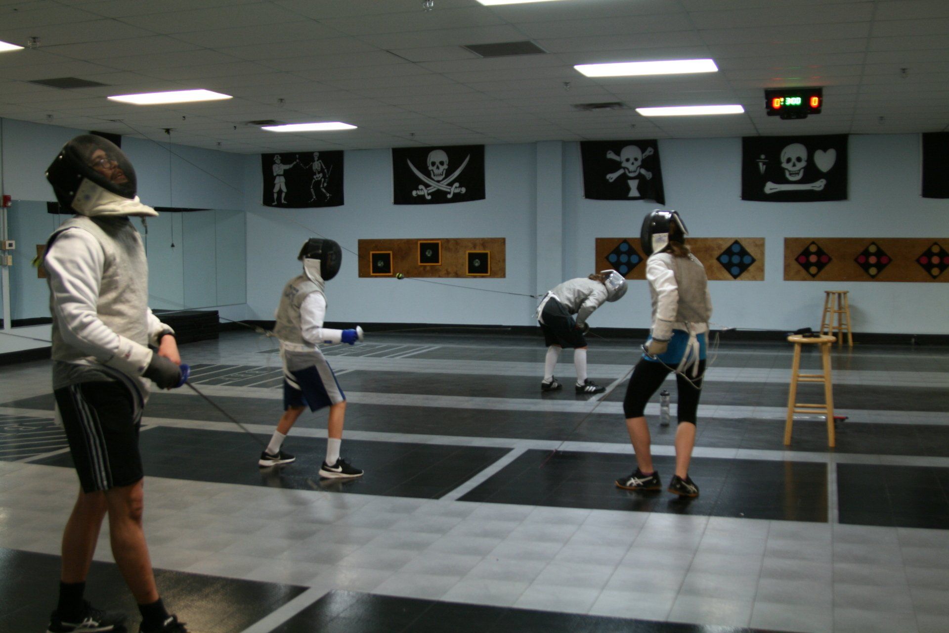 BBF Club Nights are an open house format designed to allow experienced and intermediate fencers alike to grow and expand their skill levels against a wide variety of fencers and fencing skills. Club nights are open to drop in and fence, regardless of enrollment in the BBF School. Electric fencing strips are available for all fencing levels and weapons. Spare equipment may be provided for anyone who needs it and would like to fence.